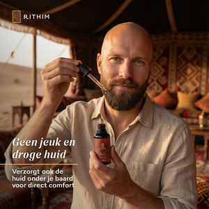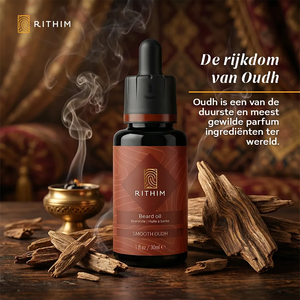 Upgrade je baard vandaag nog. Klik op In winkelwagen en ervaar hoe Rithim® Smooth Oudh Baardolie je baard verzorgt, je huid kalmeert en je uitstraling naar een hoger niveau tilt.